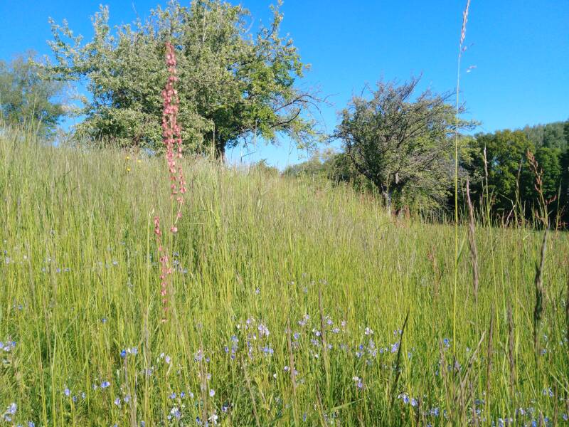 Unsere Streuobstwiese schmiegt sich idyllisch an einen Nordosthang, mit einem famosen Panoramablick in die Sächsische Schweiz und darüber hinaus.